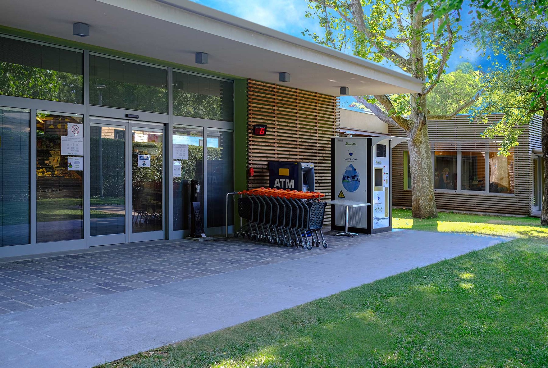 All’esterno del market è a disposizione una “Casa dell’Acqua” a pagamento, dove potrete approvvigionarvi di acqua refrigerata, naturale o frizzante, senza sprechi di plastica e l’impatto negativo sull’ambiente della filiera dei trasporti. Un secondo distributore è a disposizione presso i servivi igienici denominati "verdi".
