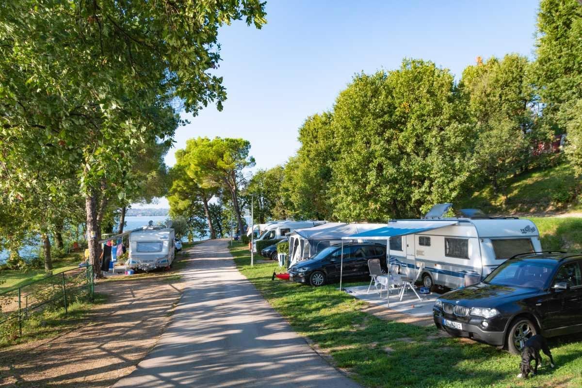 A un passo dal lago, immerse nel verde, in una zona tranquilla e rilassata del campeggio.