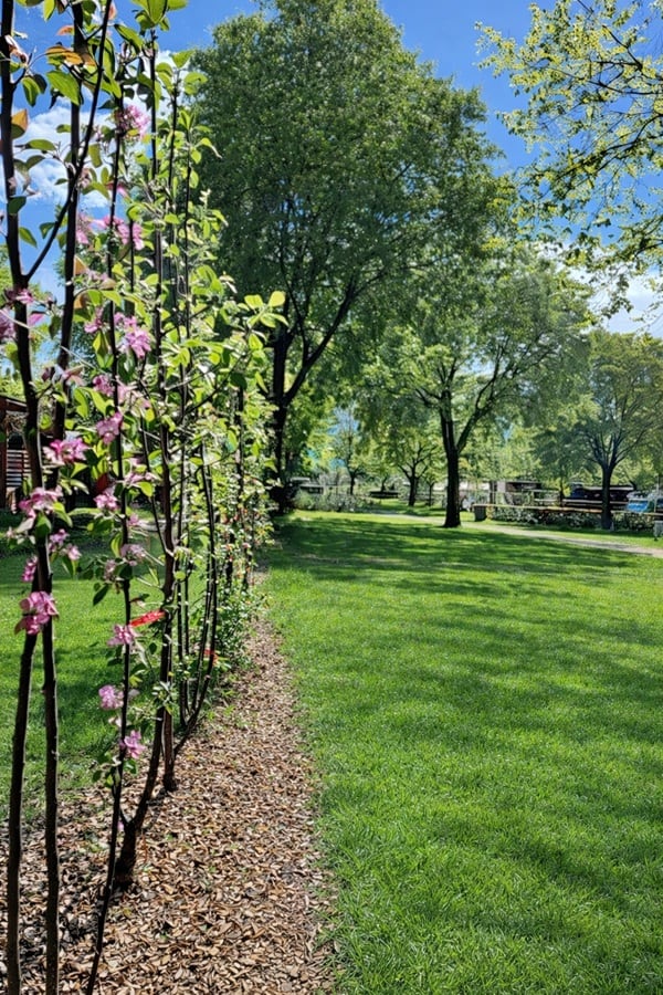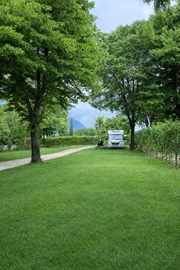 In zona centrale separate da filari di alberi da frutto, semiombreggiata, con fondo erboso, allaccio elettrico e alla rete idrica e fognaria, di dimensioni generose. Adatte a tende, camper e roulotte di dimensioni importanti, vicine ai servizi.