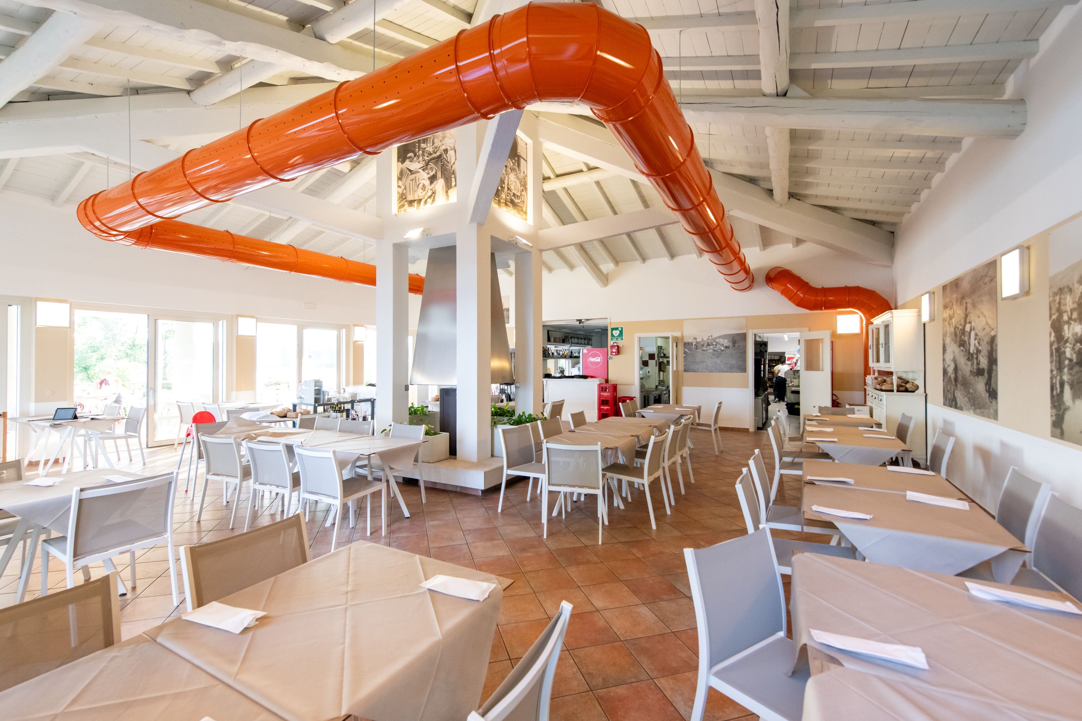 Il ristorante, direttamente affacciato sul lago, ospita una esposizione di fotografie storiche tratte dalle lastre originali e dedicate alla storica sfida automobilistica Pechino-Parigi compiuta dal Principe Scipione Borghese.
