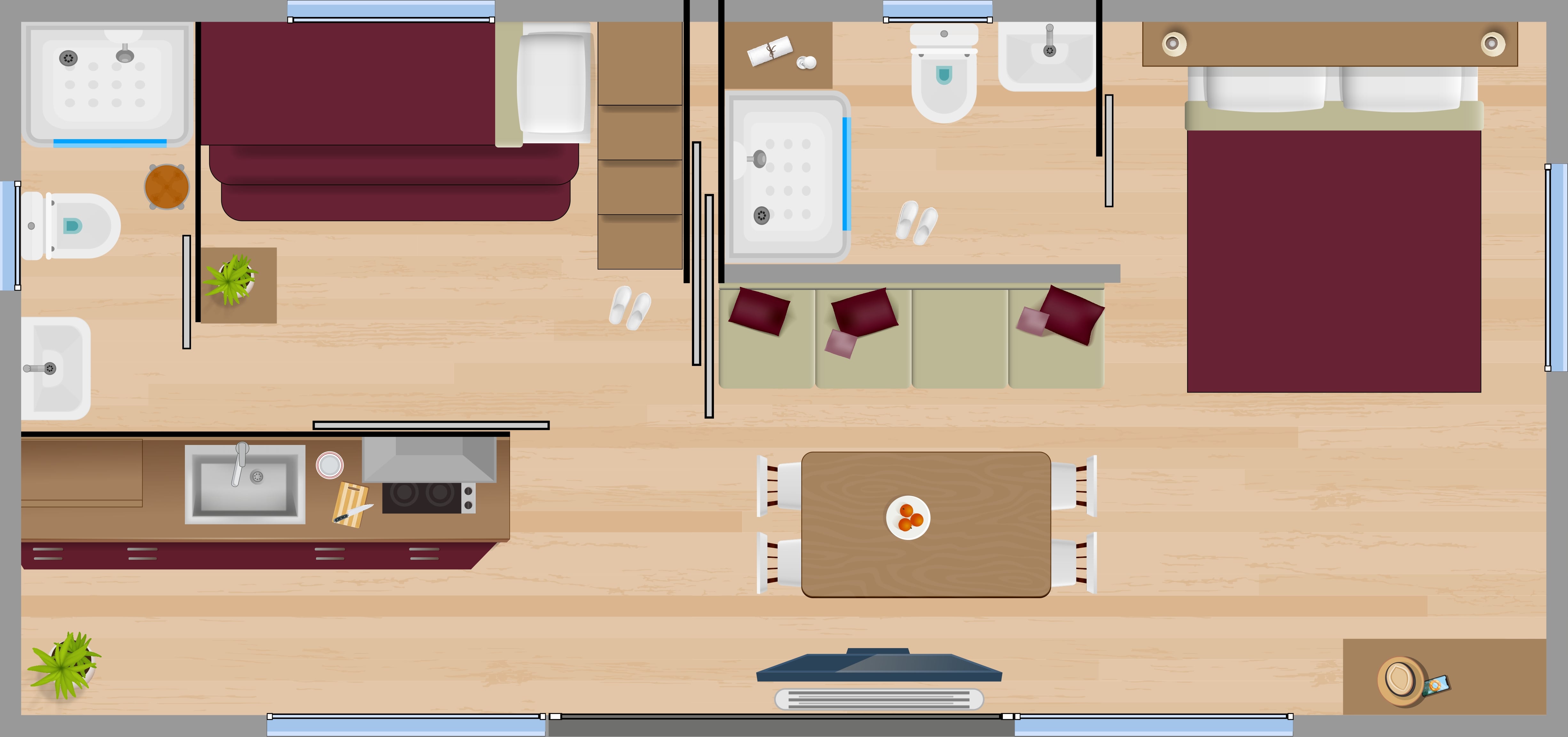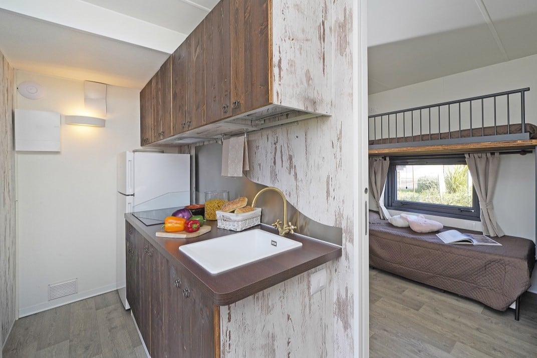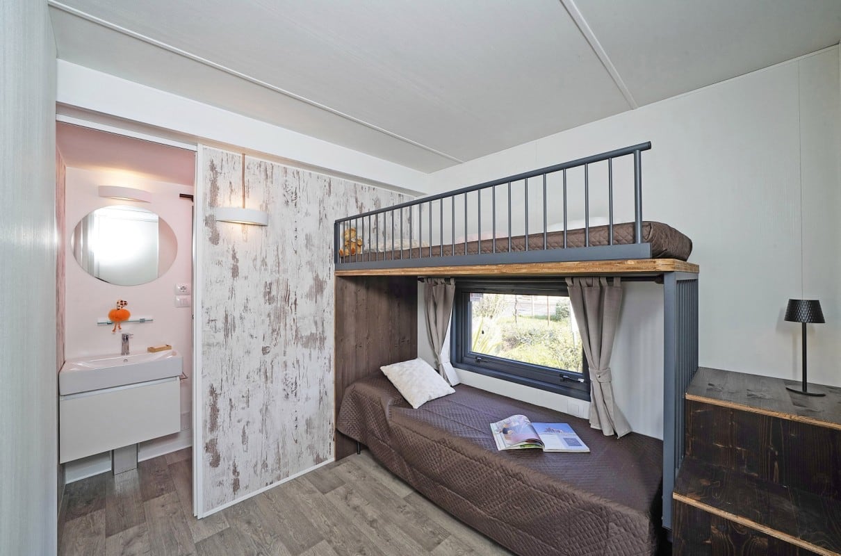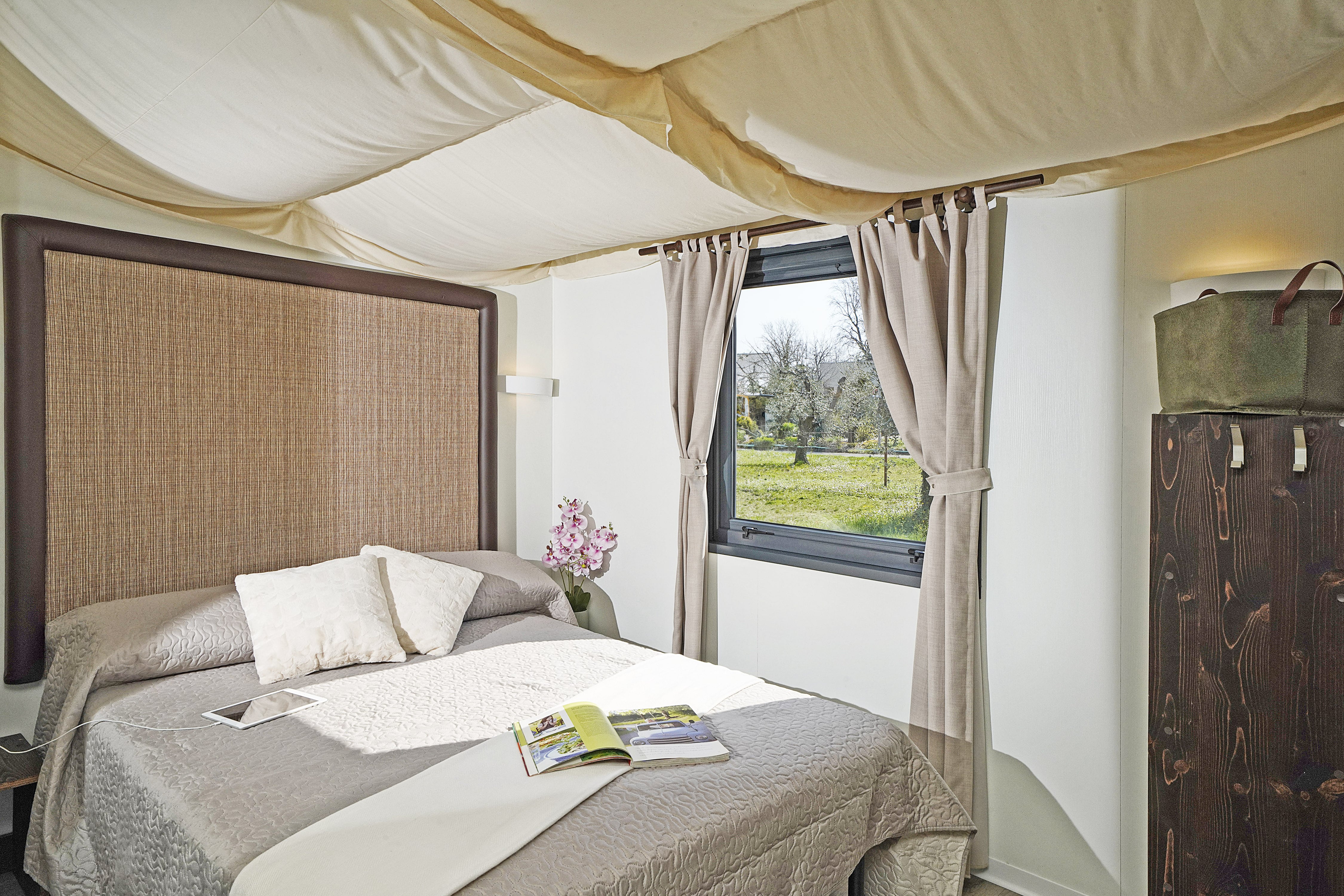 Case mobili dall’ambientazione informale e rilassante, con tutti i comfort, un'ampia terrazza esterna e la possibilità di separare la zona notte con una parete scorrevole. Godono dell’atmosfera tipica di una tenda Glamping abbinata alla comodità di una moderna casa mobile