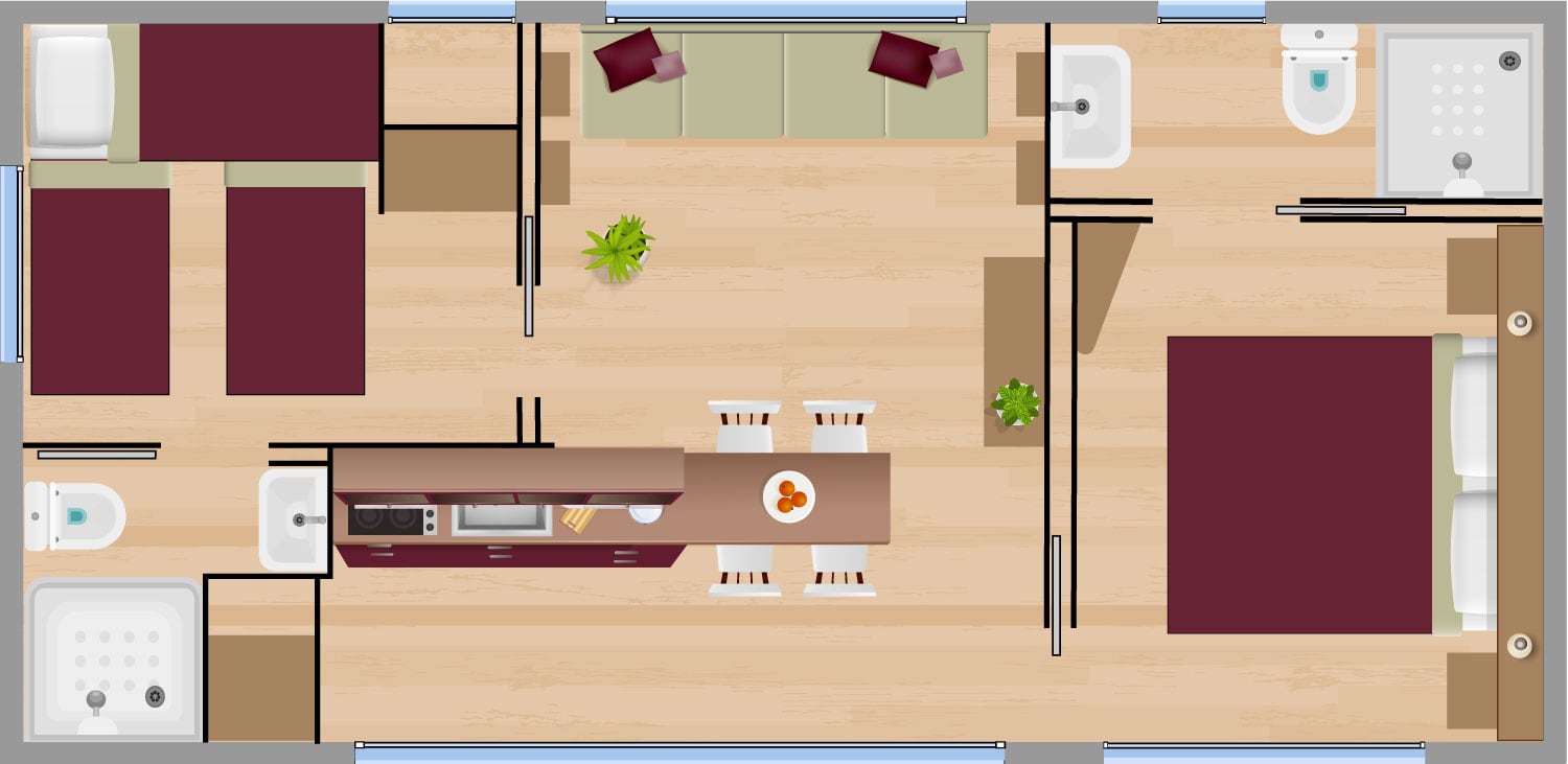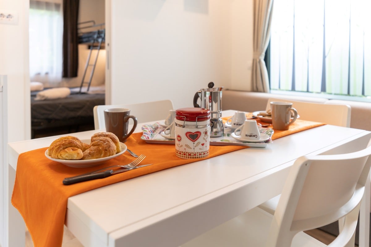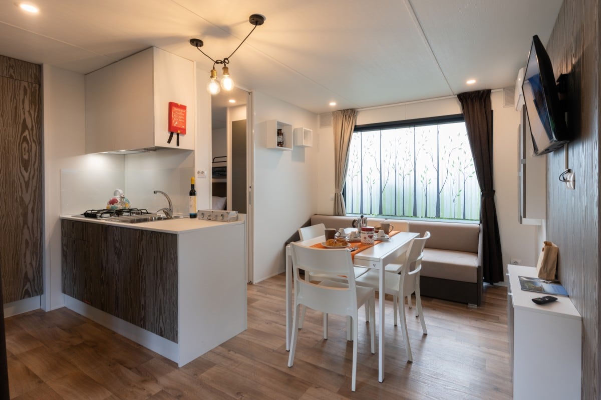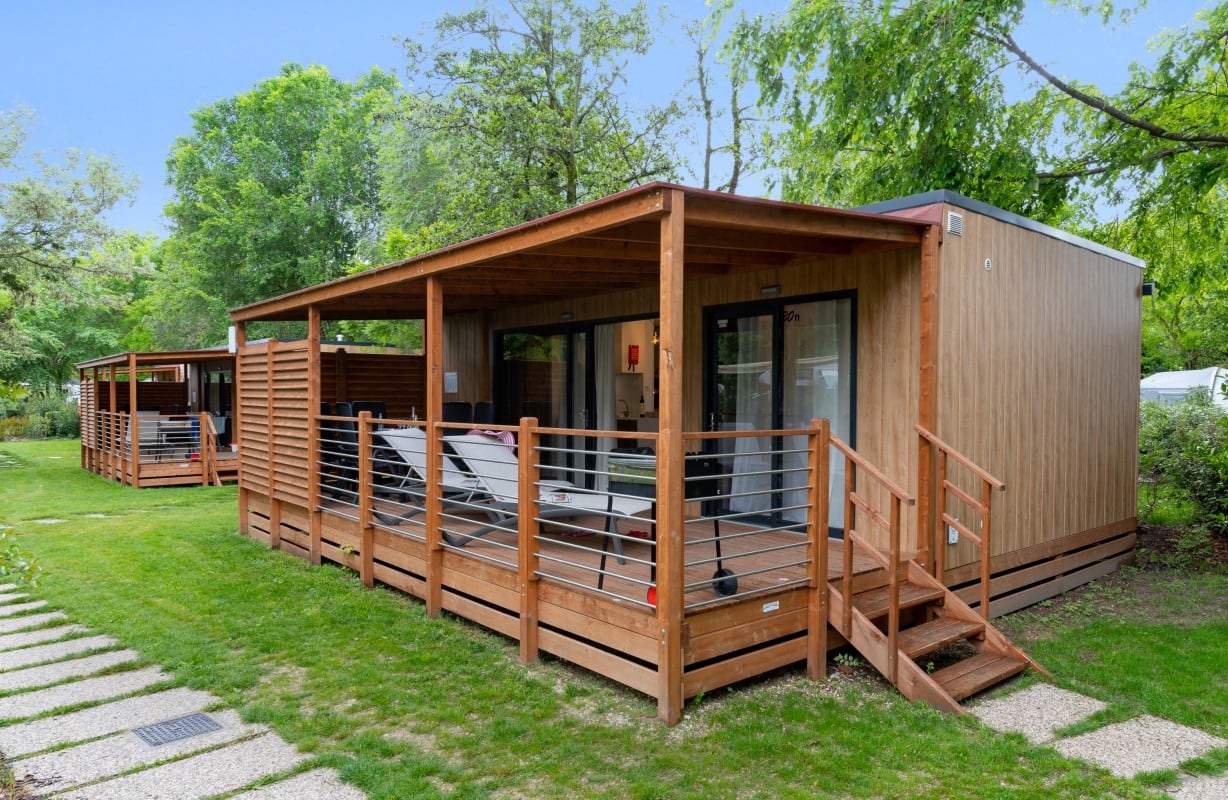 Case mobili ricche di dettagli inediti e spazi abitativi generosi, con terrazza coperta a tutta lunghezza, centrali e in prossimità della piscina