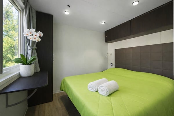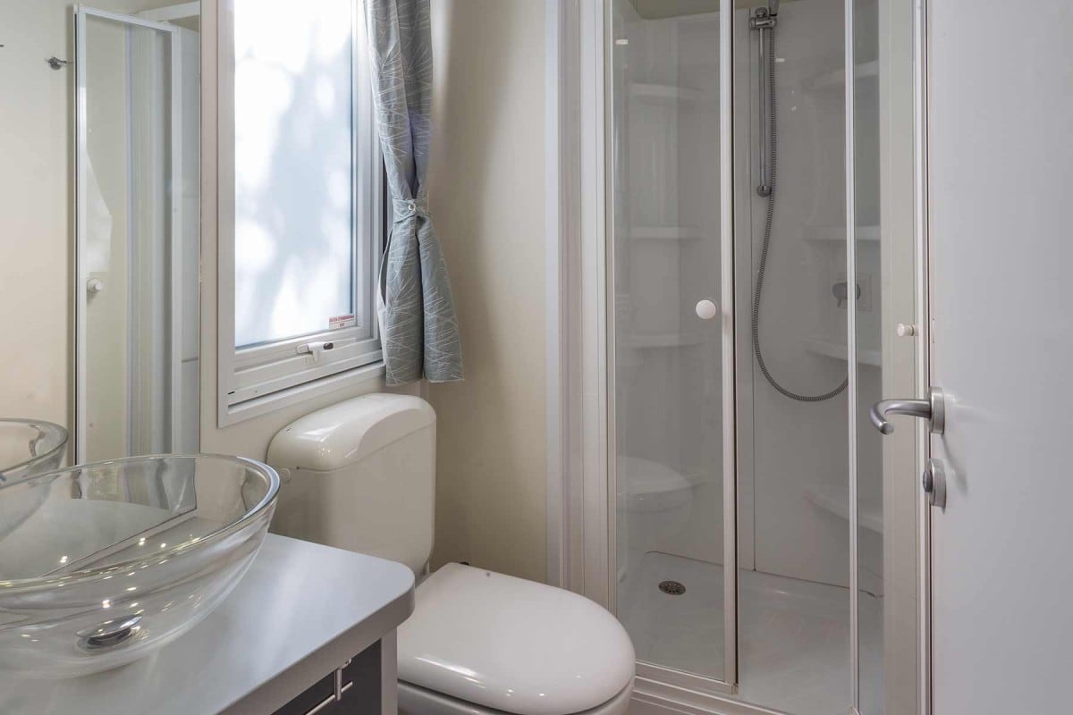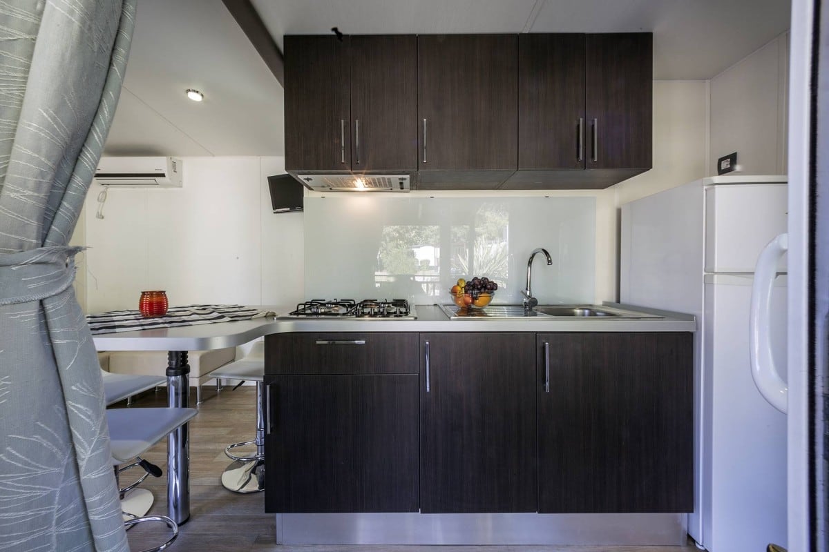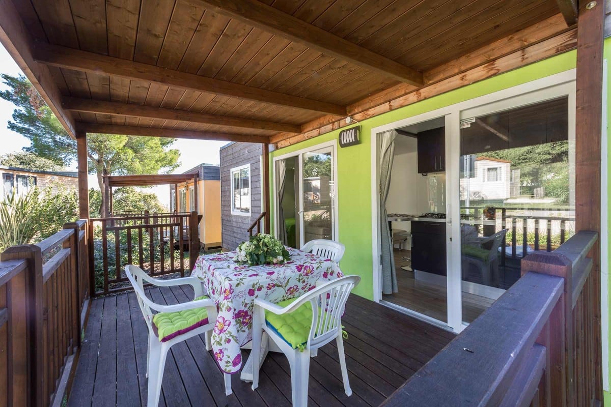 Comode case mobile per la coppia, posizionate in un’area sopraelevata tranquilla e ombreggiata